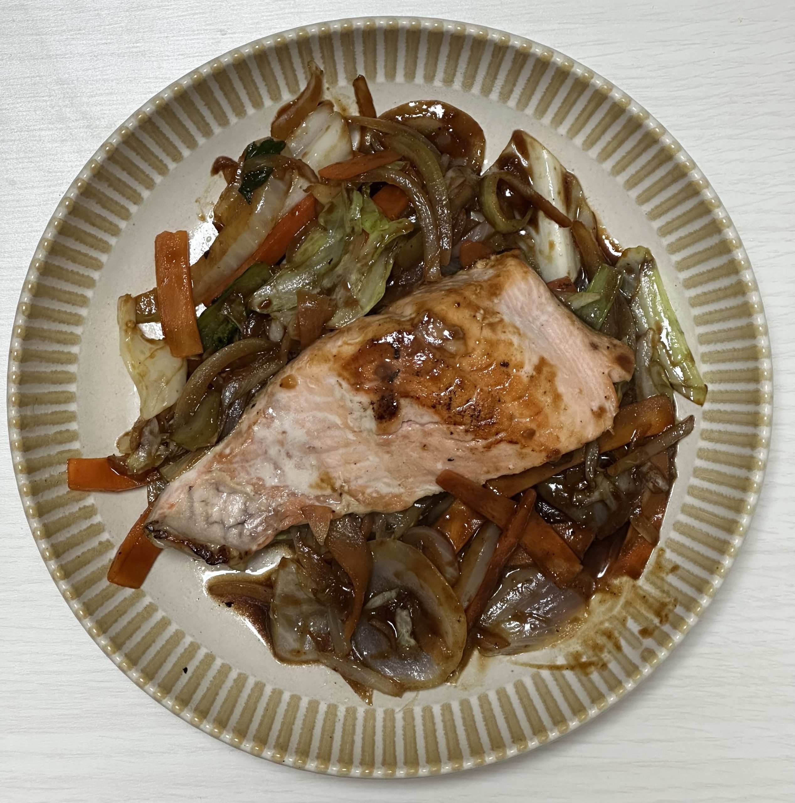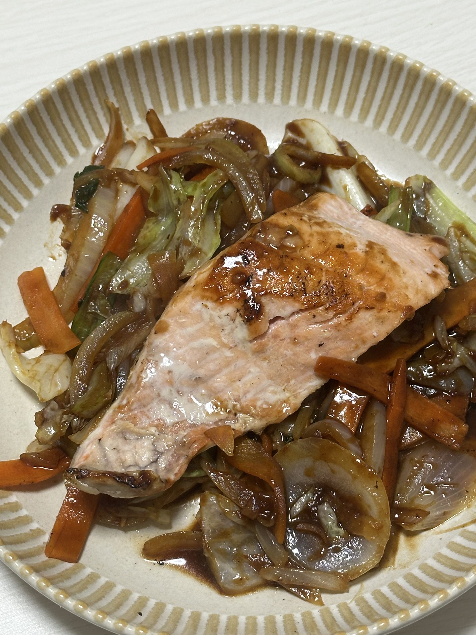 ちゃんちゃん焼きは鮭と野菜を主とし、味噌をたれとして使用する料理でござりまする。