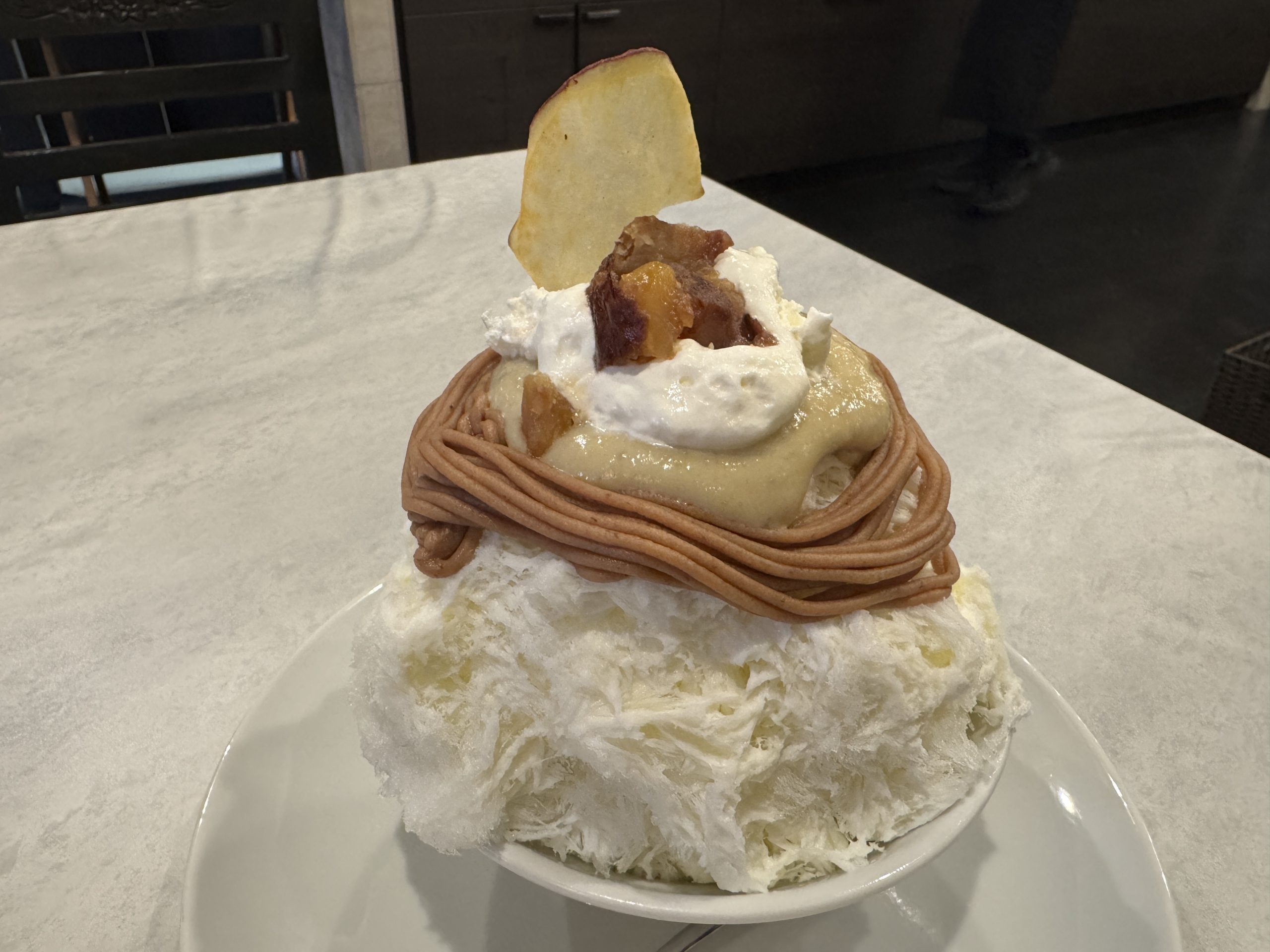 上は栗で中に芋という一杯で二度おいしいかき氷じゃ!