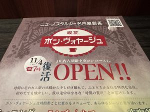 十一月四日、名古屋駅に開店致した喫茶店にござる