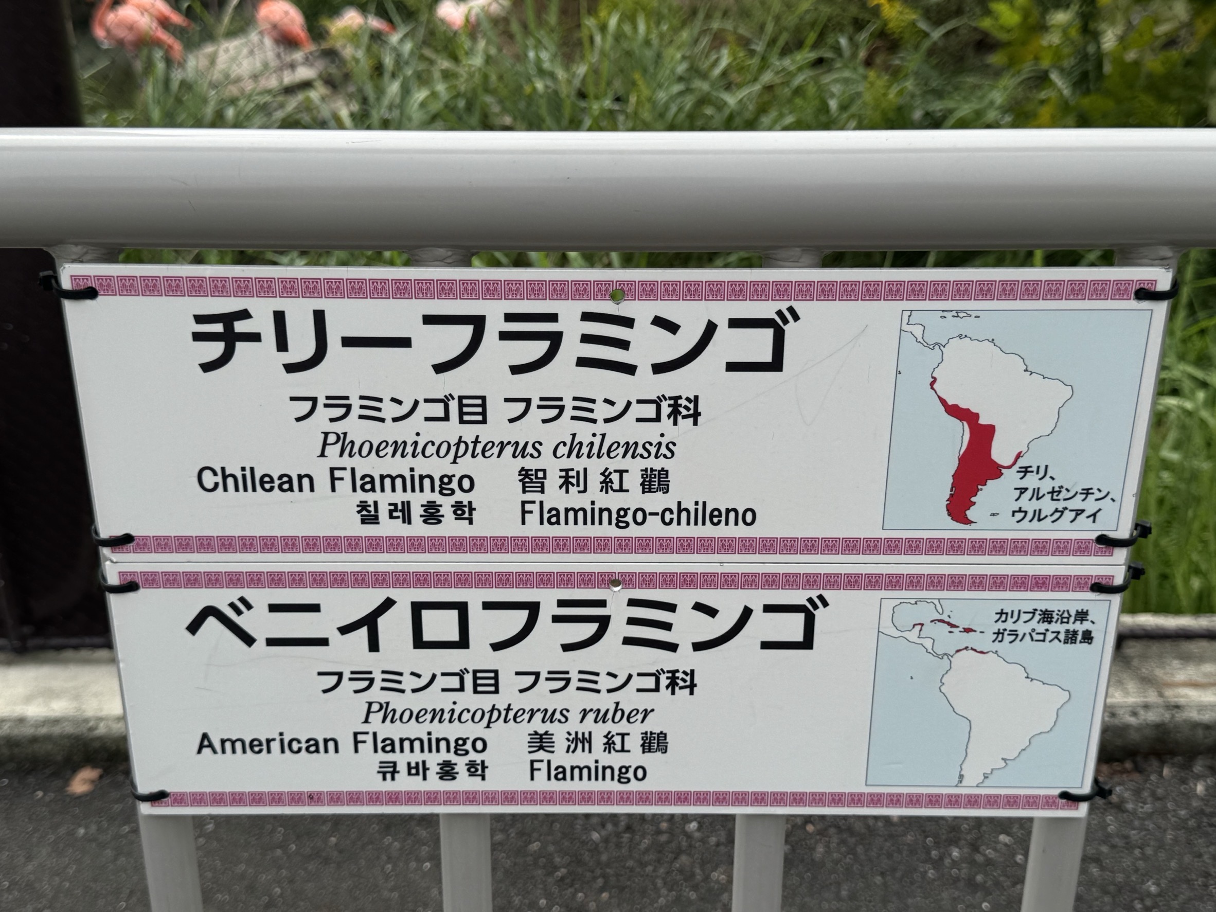 東山動植物園では二種類のフラミンゴを飼育しておってのう!