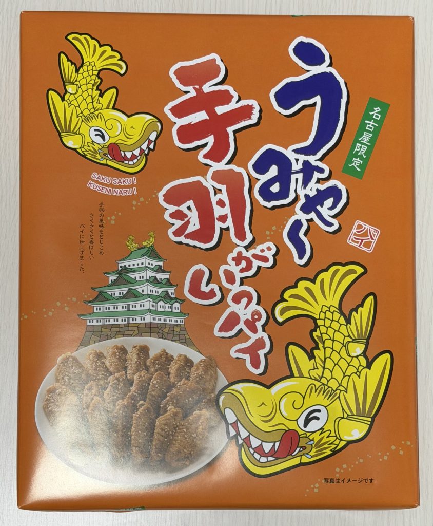 しかしながら、手羽先の風味をほんのり感じるくらいの甘めのパイに仕上がっておりますぞ!軽い食感で食べやすく、「名古屋っぽさ」が一目で伝わるところも良きところ!