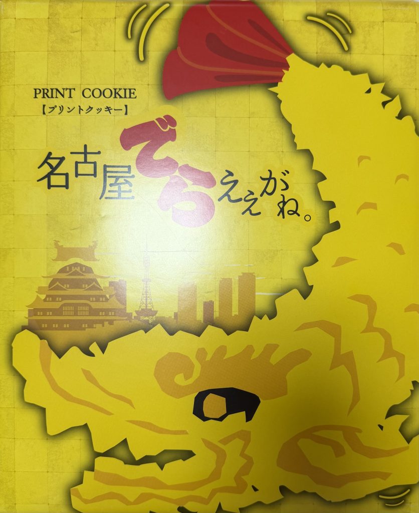 名古屋弁「でらええ(とても良い)」がとシャチホコのようなエビフライのような絵柄が印象的なお土産お菓子。